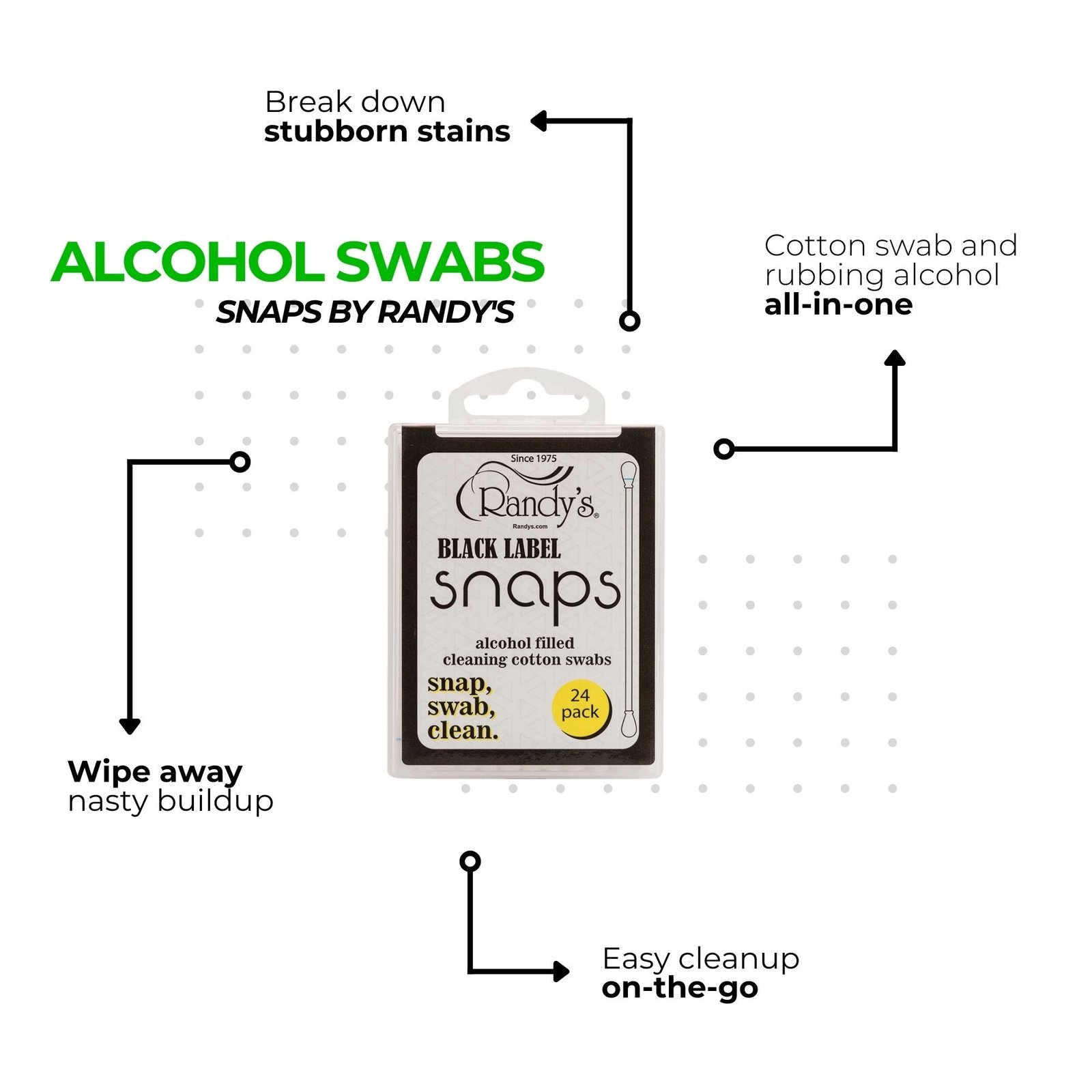 Use the Snaps prefilled cotton swaps to deep clean a messy stem or oven chamber. Hold the end with the blue line up, snap it to release the alcohol to the other end, and swab away any tough residue.