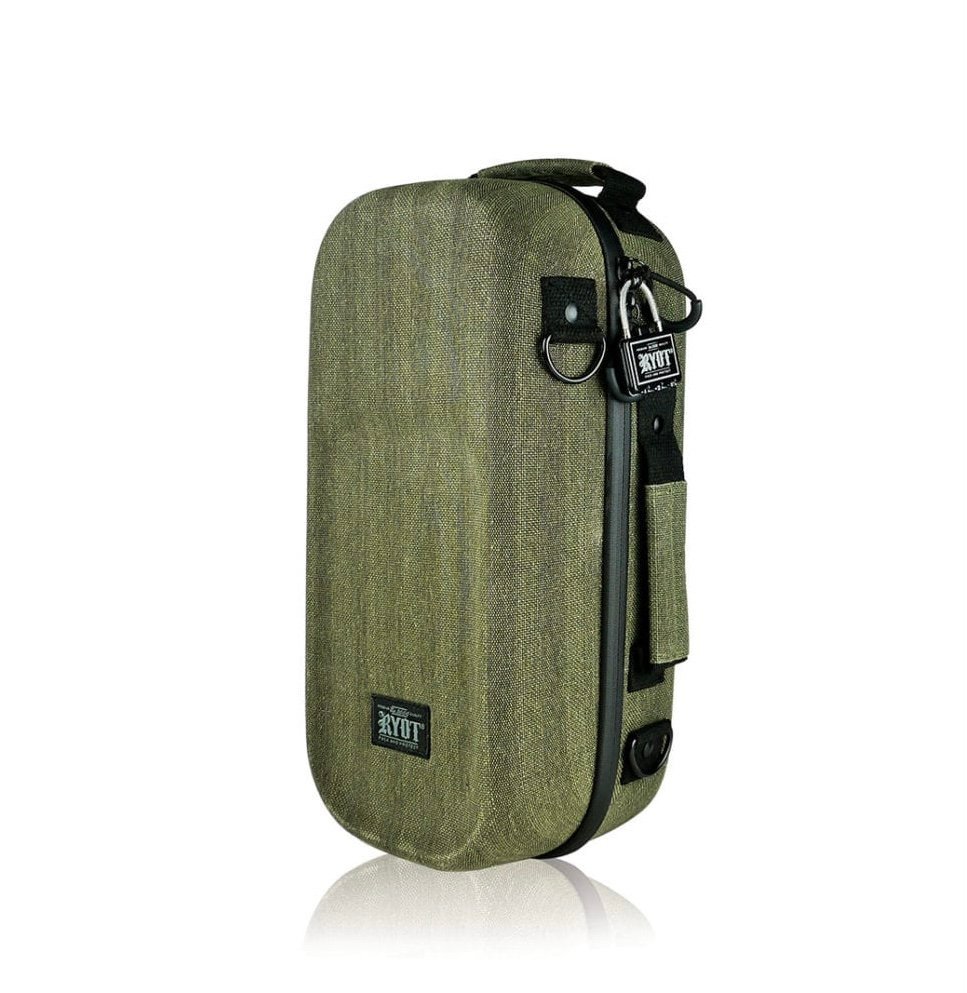 The new and improved RYOT Axe Pack GOO.O is the goo-to hard case to confidently pack and protect your large glass, gear, and other goodies. Outfitted with lockable zipper pulls, thick wall padding, a silicone mat divider, X-strap technology, and SmellSafe Carbon Series capabilities, the Axe Pack traps unwanted odors for discrete storage and transport.