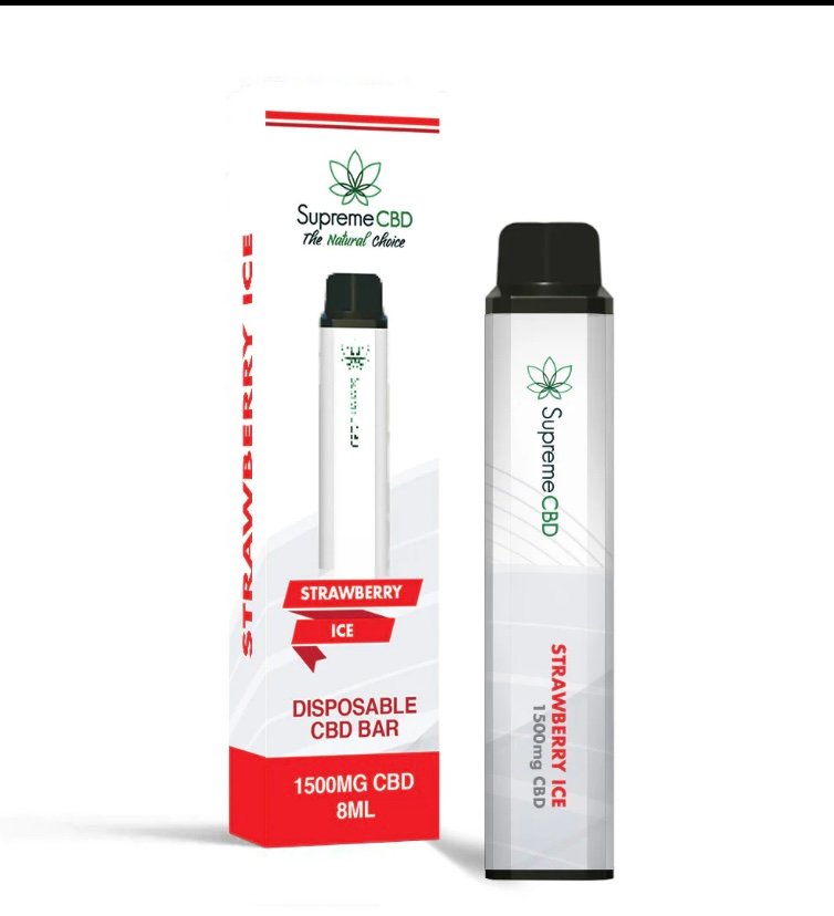 This Strawberry Ice CBD Vape is pre-filled with a 2ml capacity which contains 1500mg of CBD. With each flavour you choose, your vape will last for up to 3000 puffs (with 1 puff equalling approximately 0.5mg CBD that you’ll inhale) and a built-in 400mAh battery. Being disposable vapes, once they’re depleted you don’t have re-fill or recharge them.