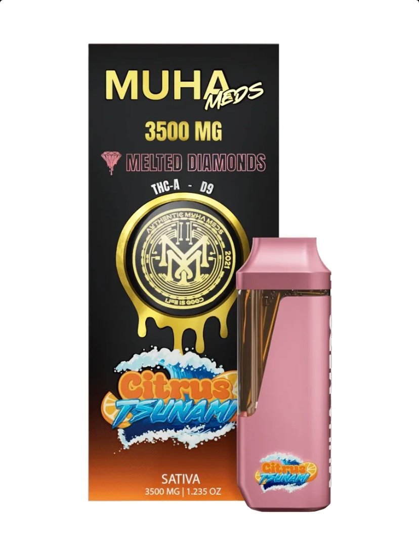 Elevate your vaping experience with the Citrus Tsunami Muha Meds THCa Delta-9 THC Melted Diamonds Disposable. Order now from our online shop.