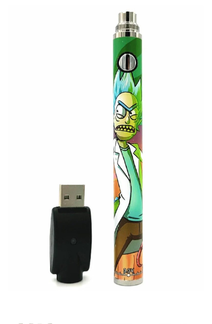 Character eGo Pen Battery (With Charger) 1100mAh is an ego style pen battery with adjustable voltage and a 510 charger that features popular animated characters. This fits all 510 connection carts.