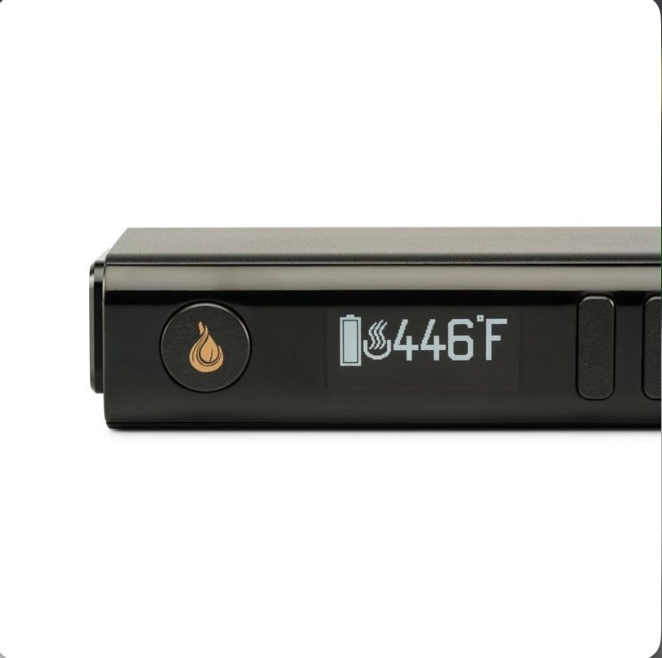 The Flowermate V5 Nano has full digital temperature control from 104° – 446° F (40° – 230° C) and vibrating haptic feedback that alerts you when the vape is turned on or off, reaches temp, or the session times out.