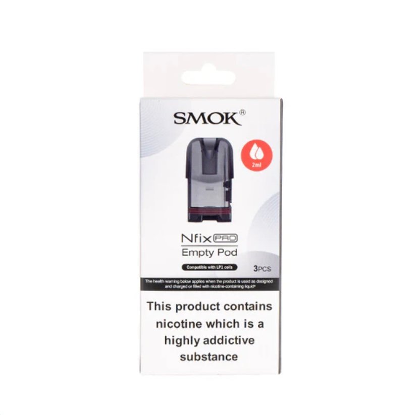 This is a pack of 3 replacement pods to fit the SMOK Nfix Pro pod kit only. With a 2ml capacity, the SMOK Nfix Pro replacement pods come empty and feature a silicone stoppered side fill design which makes leaks a thing of the past.