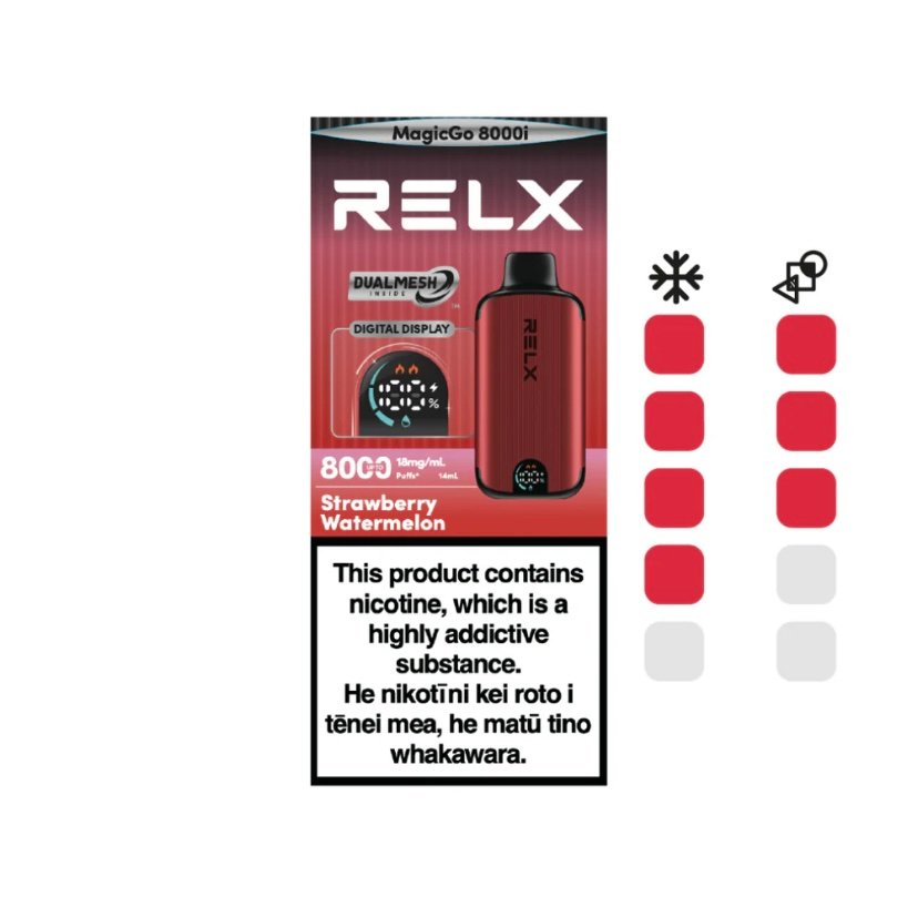 The RELX MagicGo 8000i Strawberry Watermelon is a premium option in disposable vapes, redefining convenience and style with advanced technology. Crafted by RELX Vape, the RELX MagicGo 8000i features a sleek metallic design that delivers both exceptional performance and elegance. This high-quality device, imported directly from RELX Vape to Australia  & New Zealand, is perfect for those seeking a superior vaping experience.