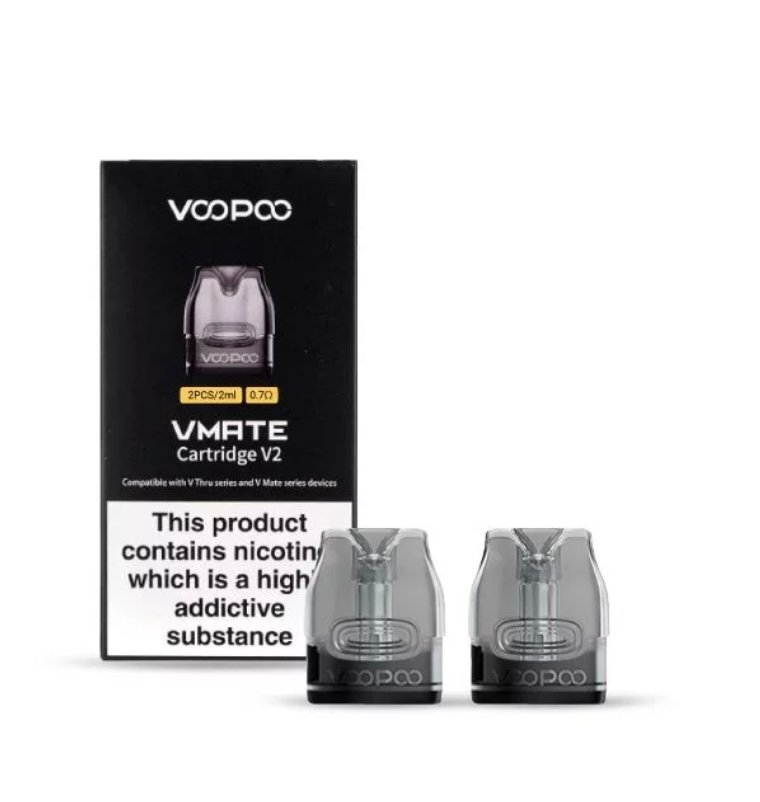 VOOPOO VMate Replacement Pod Cartridge V2 are the most recent replacement cartridges for compatibility with the VOOPOO VMate Kit Infinity Edition and the VOOPOO VMate E Kit.